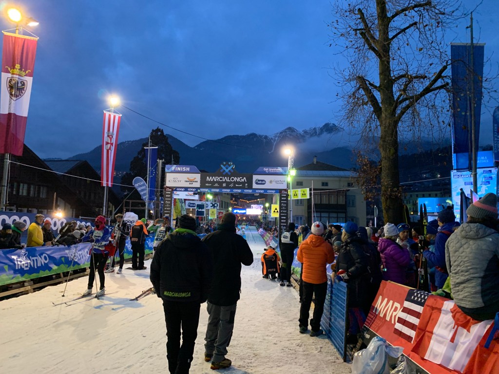 Predazzo was another super vibrant town and it was where you turned off to the finish for the 45 km Marcialonga light. No way I was doing that! I was in for the 70km! It was also really cool to be skiing on the street that we cycled on last summer.
