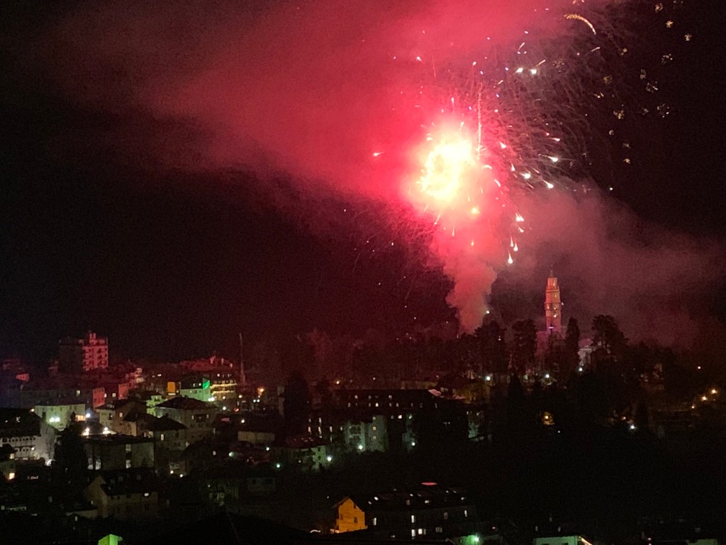 Once we picked up our bags, changed our clothes, picked up our finisher shirts had something to eat and got our passports stamped we walked up hill for about 30 minutes to Carano, to our apartment. When we were almost there we saw many cars parked on the side of the street looking down on Cavalese. As it turns out they have a big fireworks show as soon as the last skier crosses the line. What a show it was-lasted about 25 minutes! Bigger than Canada Day show on Parliament Hill in Ottawa!