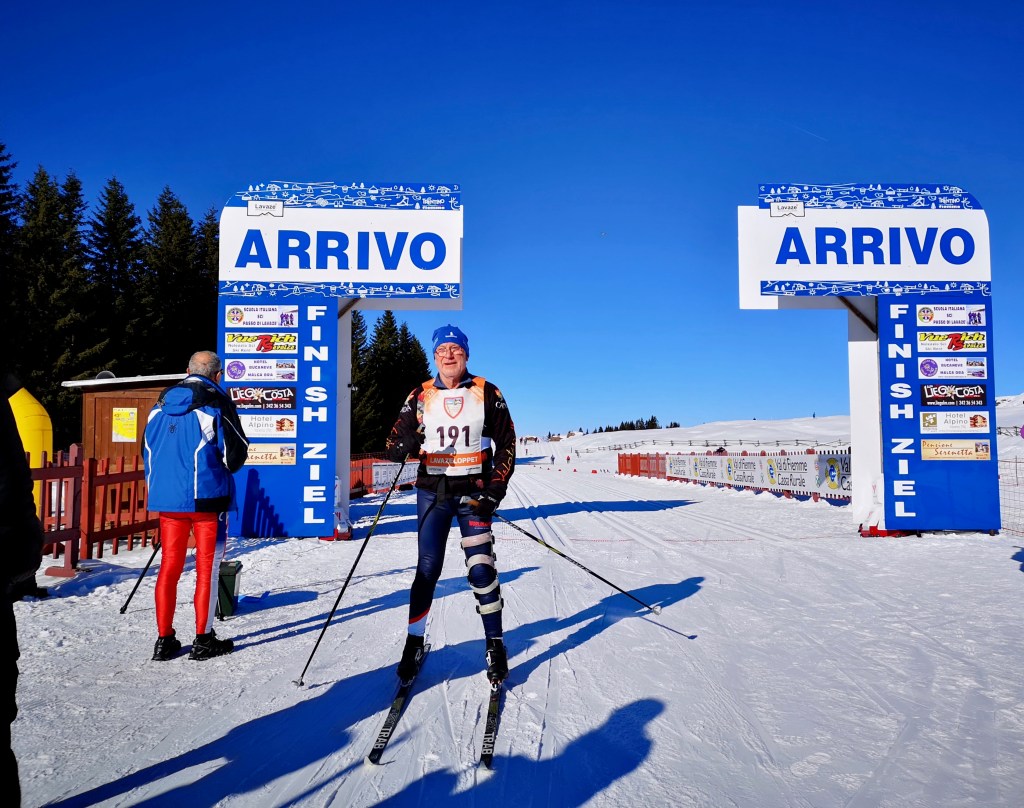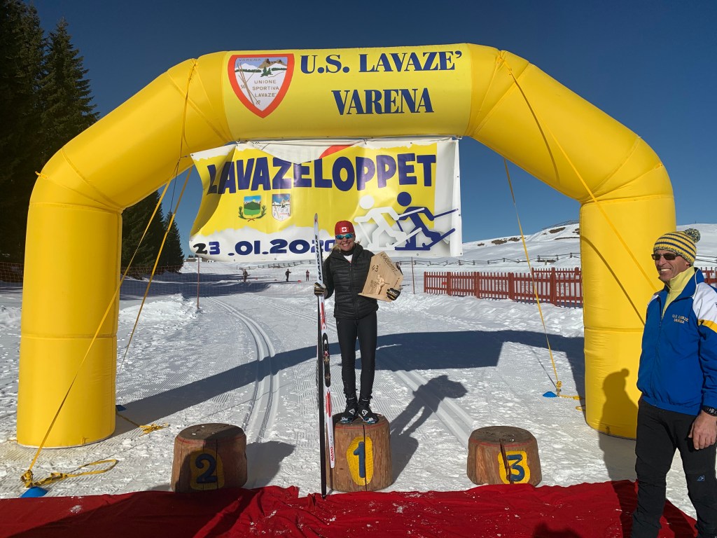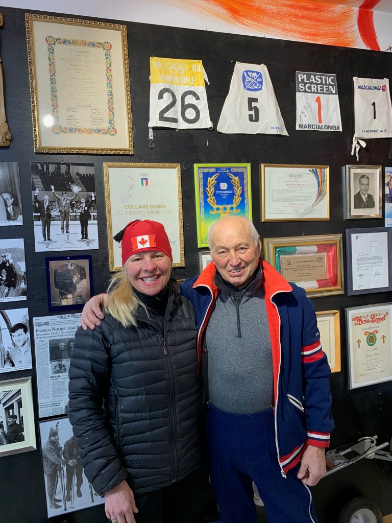 As it turns out his name is Franco Nones and he won a gold medal at the 1968 Olympics in Grenoble. He was the first non-Scandinavian and non-Soviet/Russian male to win an Winter Olympic Gold medal in cross-country skiing. I showed him our bag of wax that we bought and he said “vitamins”!! Not sure what he meant by that.