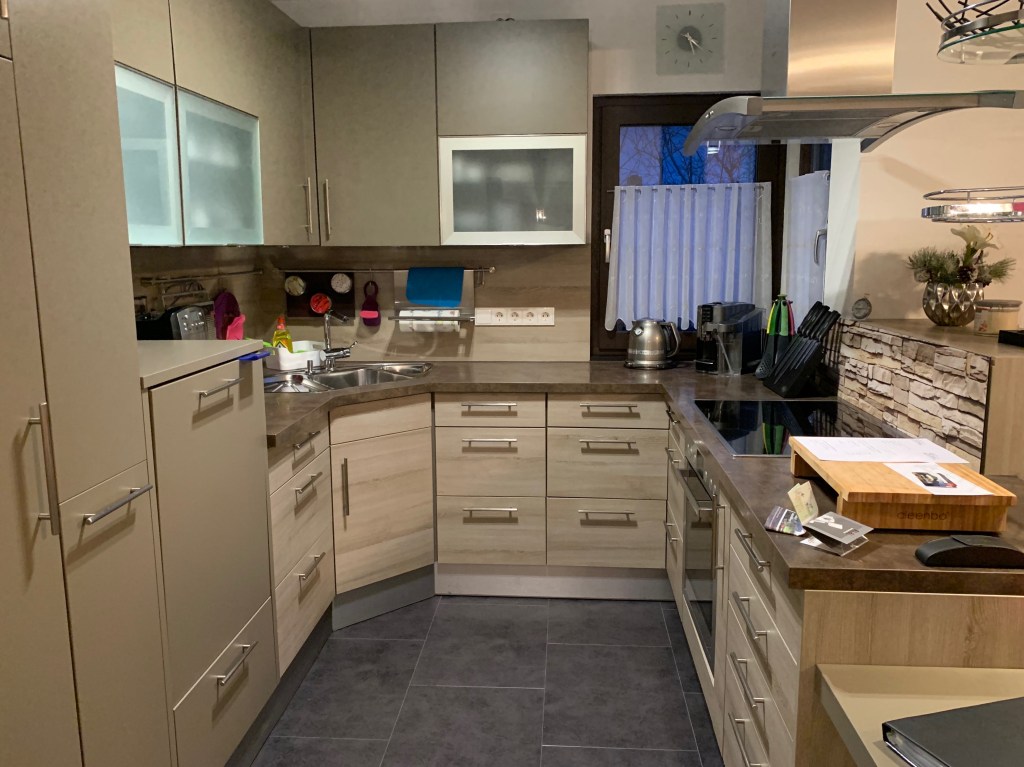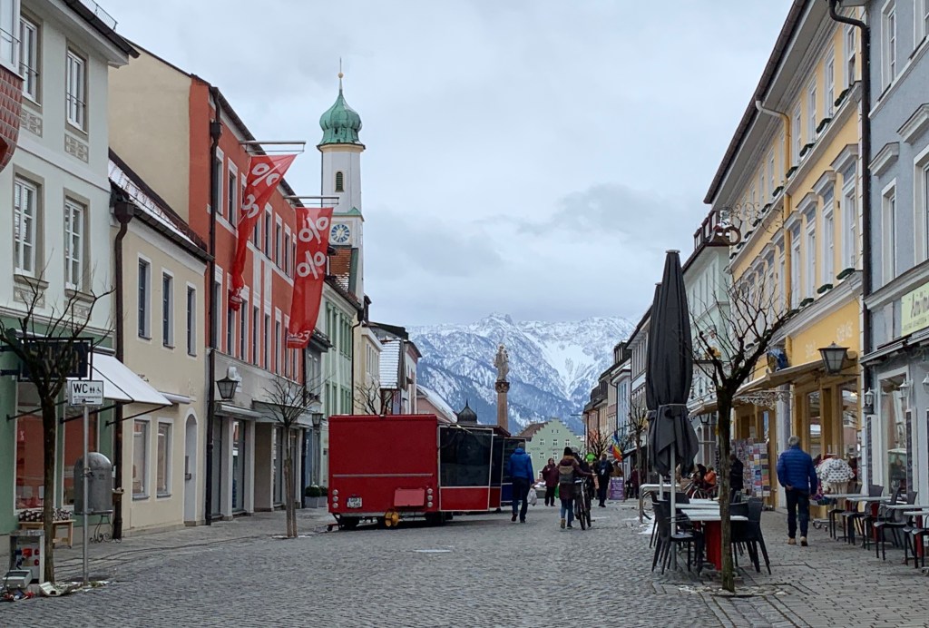 Our new home is super comfy, large and extremely well equipped. The kitchen has every gadget and appliance known to man and it also has a nice pellet stove. It’s about a 3 minute walk to the zentrum of Oberammergau.