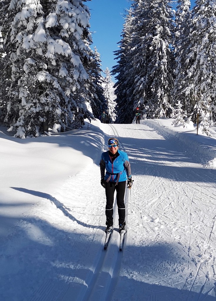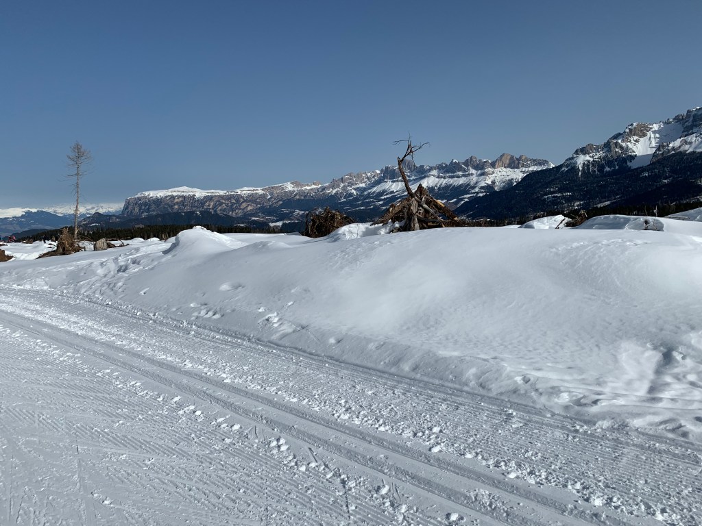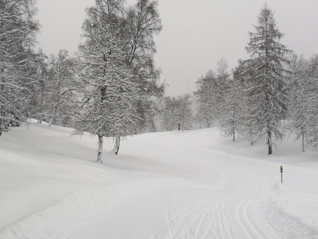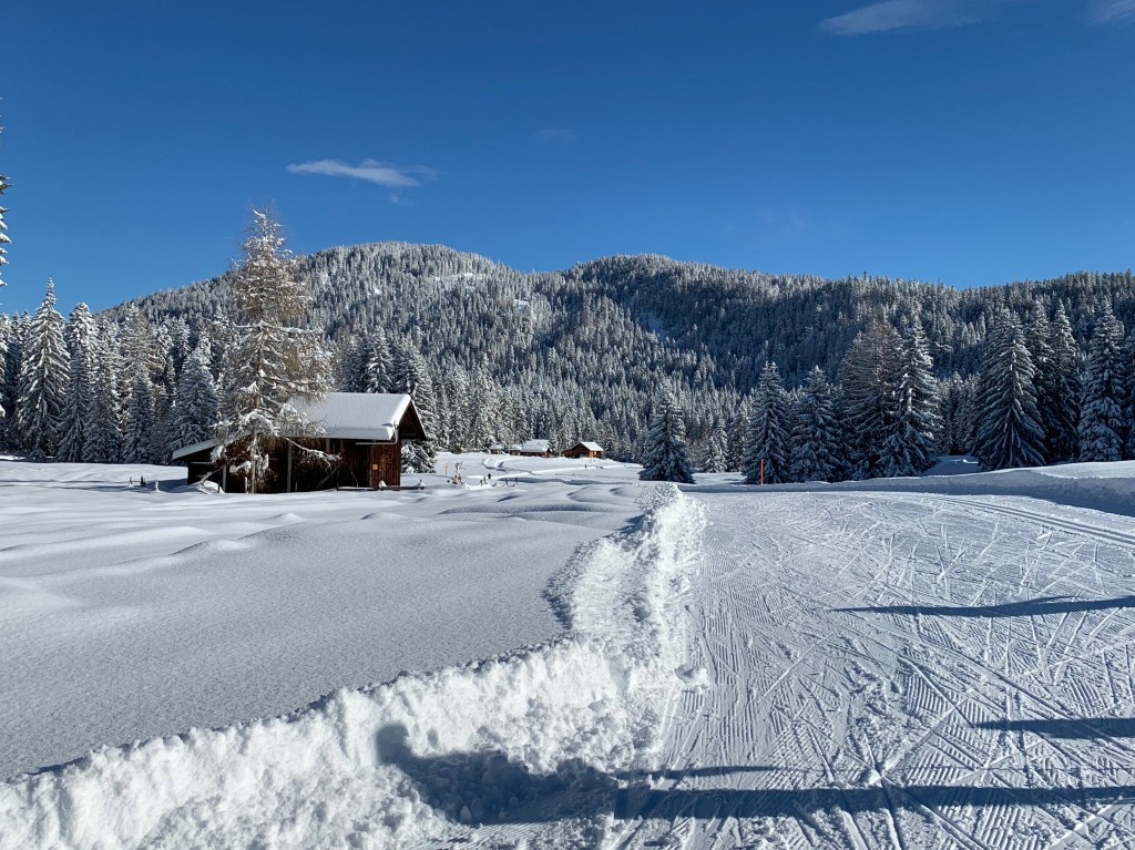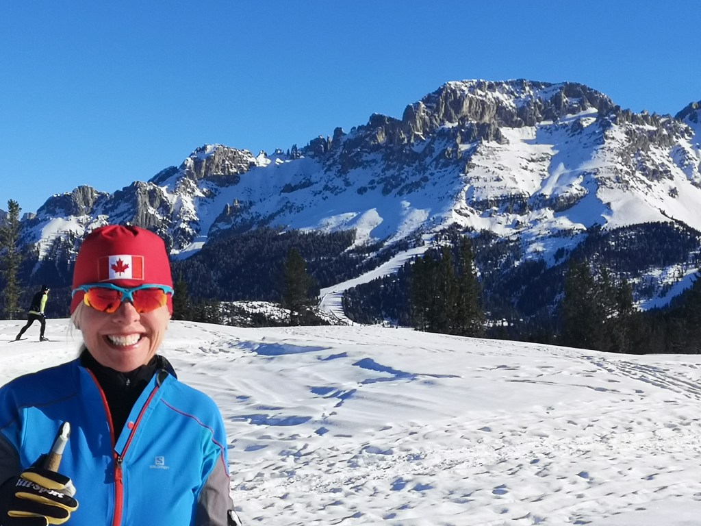 It’s just so spectacular! We love it here! There are over 80 km of trails!A lot of double poling around here!One of the few trees that’s still standing after the storm.How’s this for a nice place to take a break?Winter triathlon training. Here it’s ski , bike and run!Hope you are enjoying my blog and get to come skiing here some time soon!This will be the finish of the Lavazeloppet race tomorrow! Can’t wait!