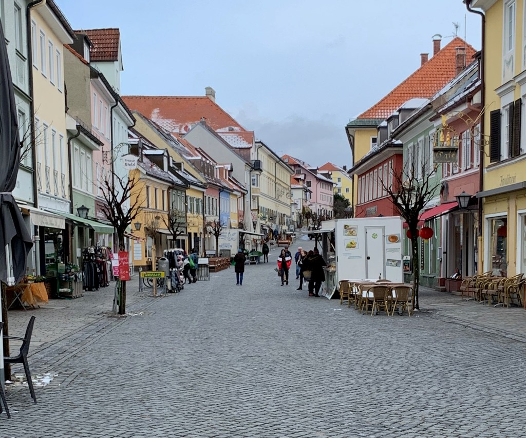 The snow that we got a few days ago has all melted away and it’s 10 degrees today. Crazy weather! It was a good thing that they cancelled the Konig Ludwig Lauf Loppet. There is no snow except for high up in the mountains now. The drive, once again, took us over the spectacular Brenner pass and the mountains were snow capped. The downhill ski areas were very apparent from the band of white artificial snow coming down the mountains in an otherwise brown landscape.