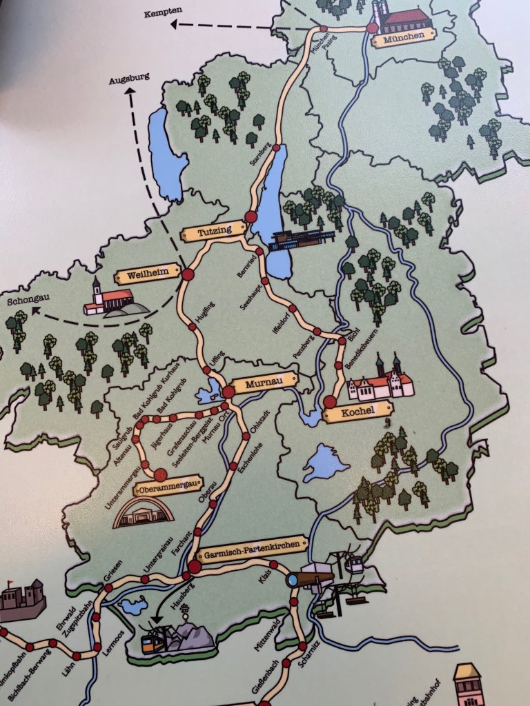 As I sat down on the train an older gentleman across from me opened a beer and it was only 10:30 am. Upon arriving, I followed a path towards the centre and then I befriended a nice man that lived in Murnau. He took me to the Main Street and to the visitor centre while pointing out the main points of interest. It was a very pretty town so I sauntered around and looked in the nice shops for a while then headed back to Oberammergau to do some more exploring. It was a really nice little excursion.