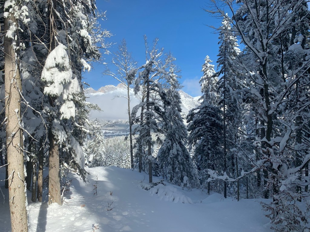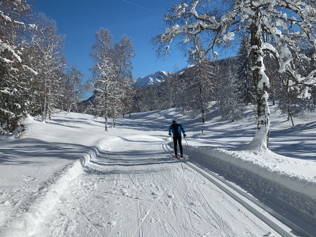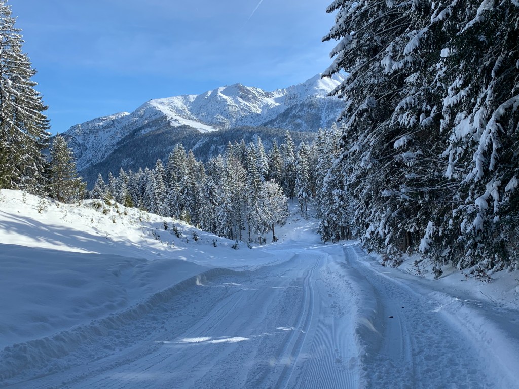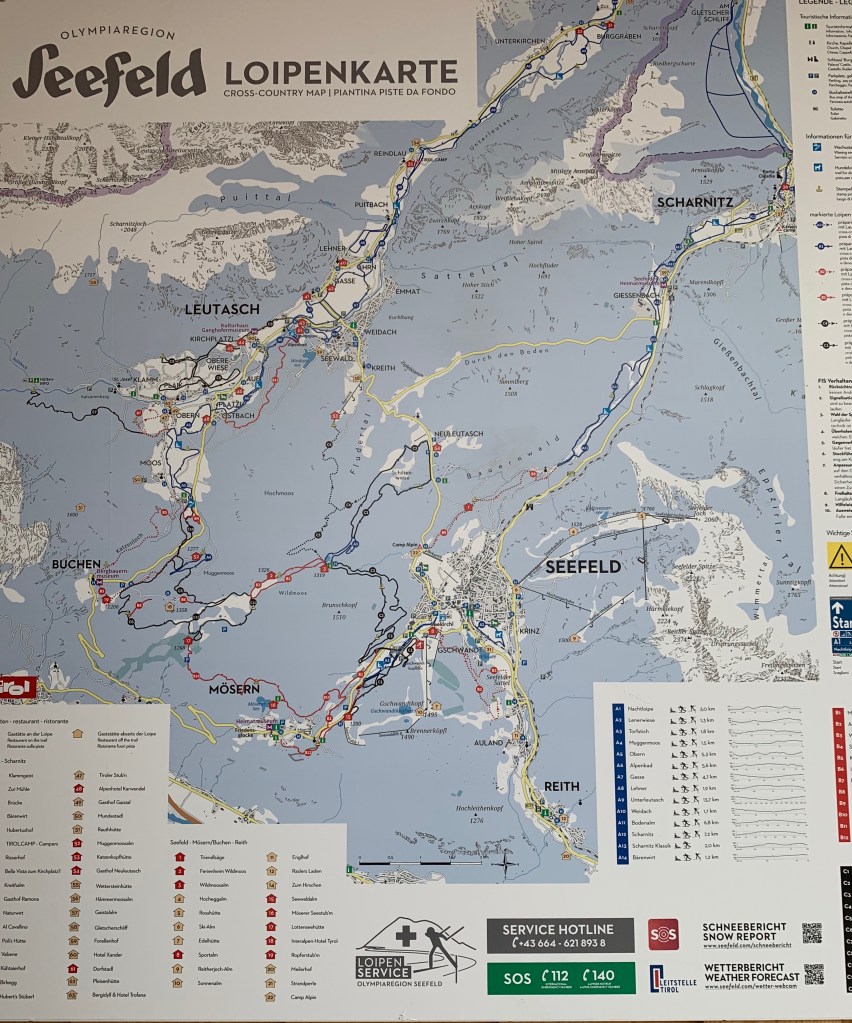 Today we drove southeast to Leutasch which is about an hour away. It’s part of the Seefeld Oympiaregion. They do a fair amount of snow farming if snow is lacking in the vulnerable places on the trails, making it a perfect place to ski!
