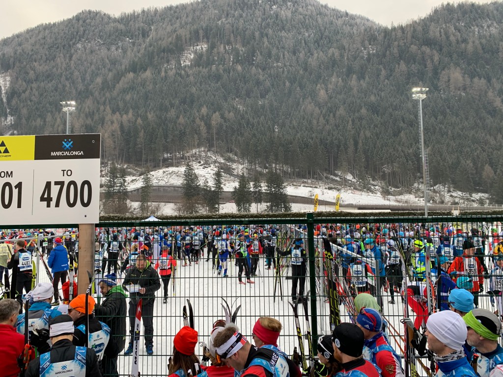 It’s always so cool to ski in a point to point race! We start in Toblach-Dobbiaco and ski south over the Cimabanche pass and down into Cortina.The starts always make me a little nervous. Don’t want to fall or break a pole!