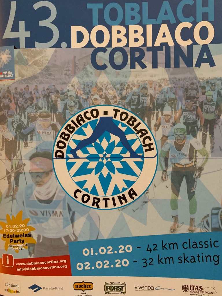 Tonight we met Robert, Grant and couple from Edmonton for a traditional Bavarian dinner at the Post Hotel. We talked about our plans for the Toblach/Dobbiaco-Cortina race this coming weekend. It’s our alternate race(s) since the Konig Ludwig Lauf in Germany was cancelled due to a lack of snow. We really hope that we can all do something about climate change.