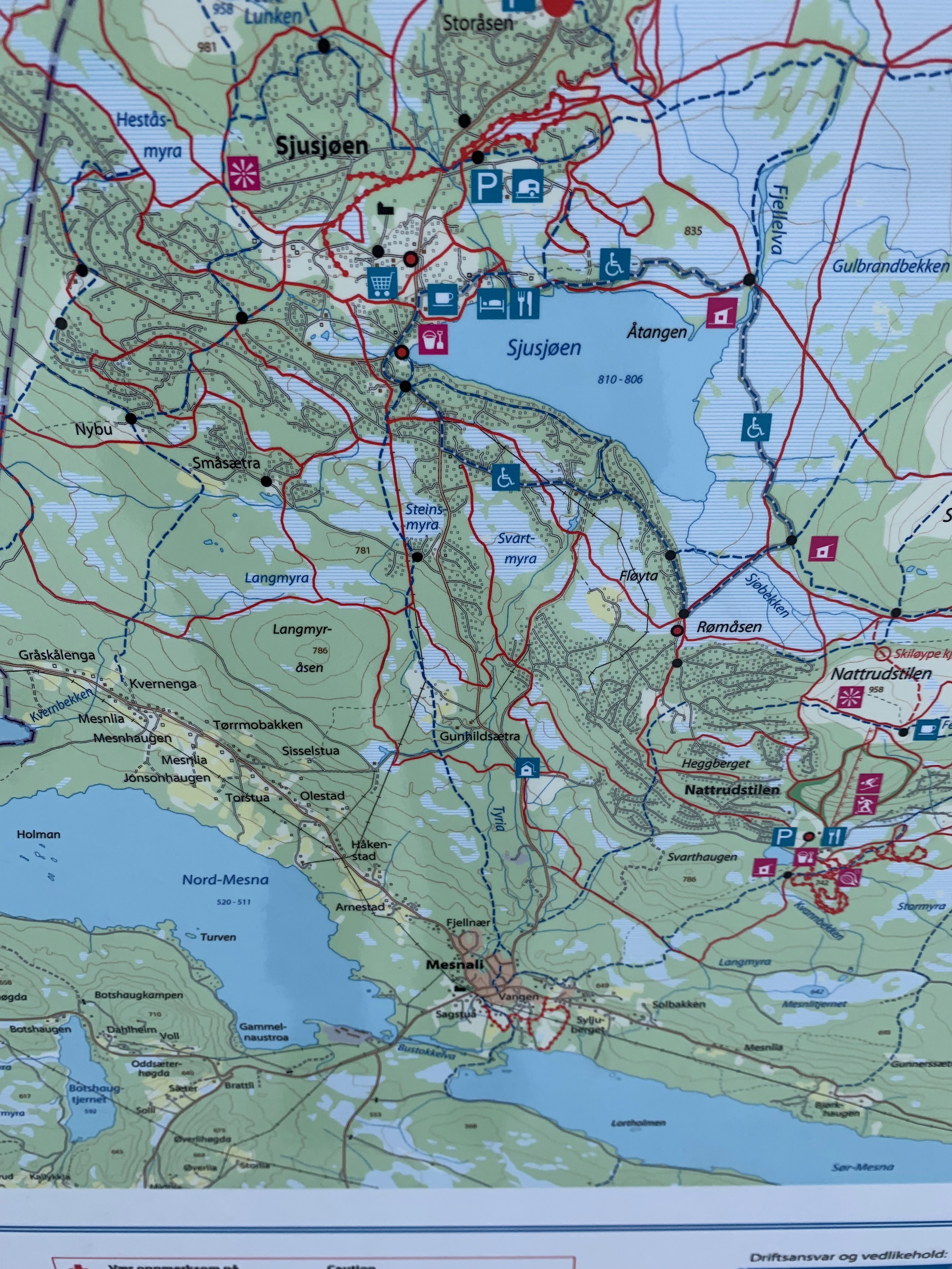 At. the end of our ski we skied right over to Hakons Hall to pick up our race kits and then skied right back to our door. It’s just so neat! The ski trails right around us are groomed for walker/ runners/bikers, skate skiing and classic skiing. See the picture below.