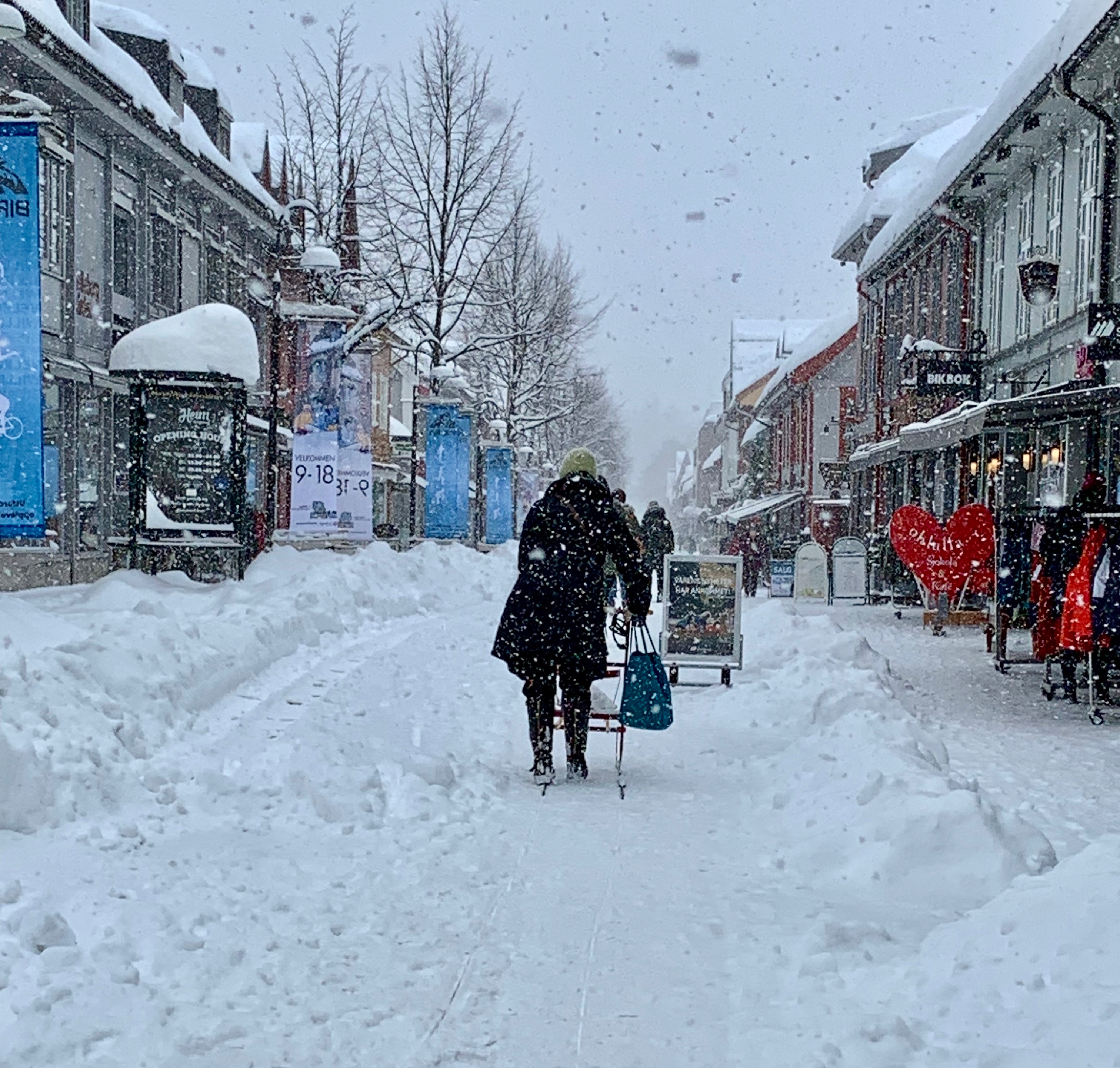 I decided that I needed a recovery/rest day so I walked down to the beautiful main street of Lillehammer and explored the shops. It’s called Storgata and is lined with beautiful low wooden buildings. It’s pedestrians only and quite spectacular, even in winter. I also picked up groceries for dinner at the KIWI grocery store and wine at the “Vinmonopolet” which is the alcohol retail monopoly.