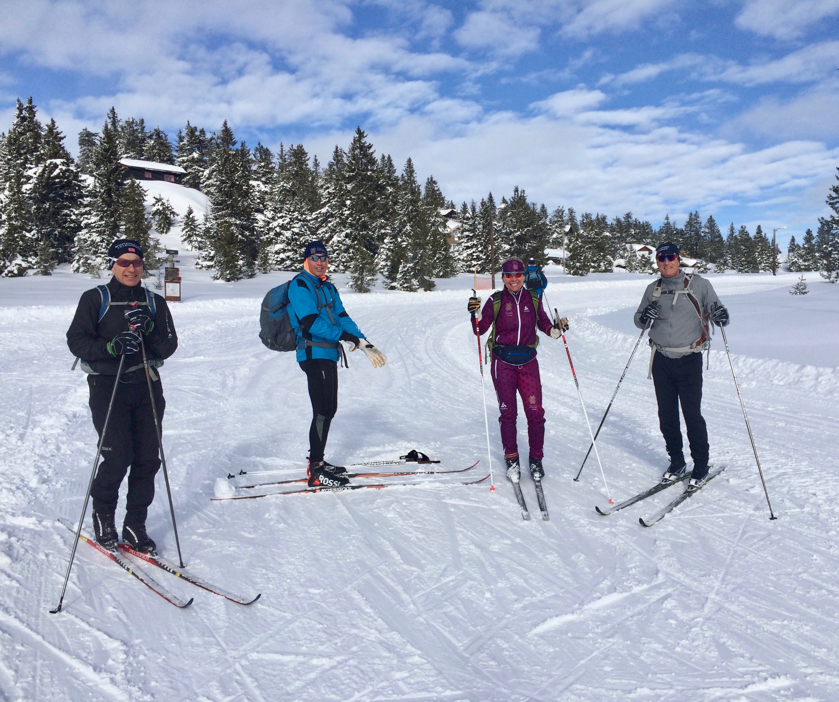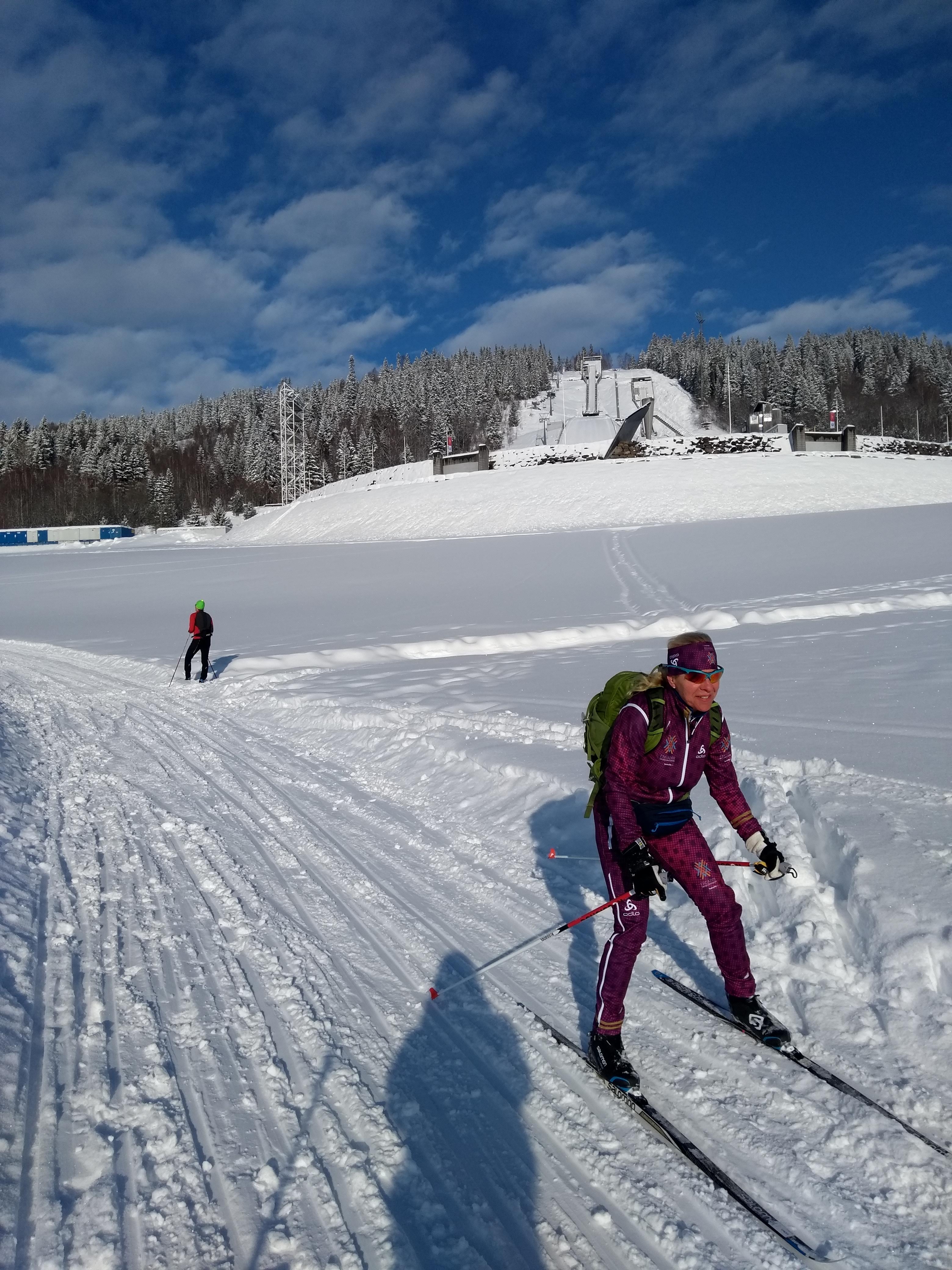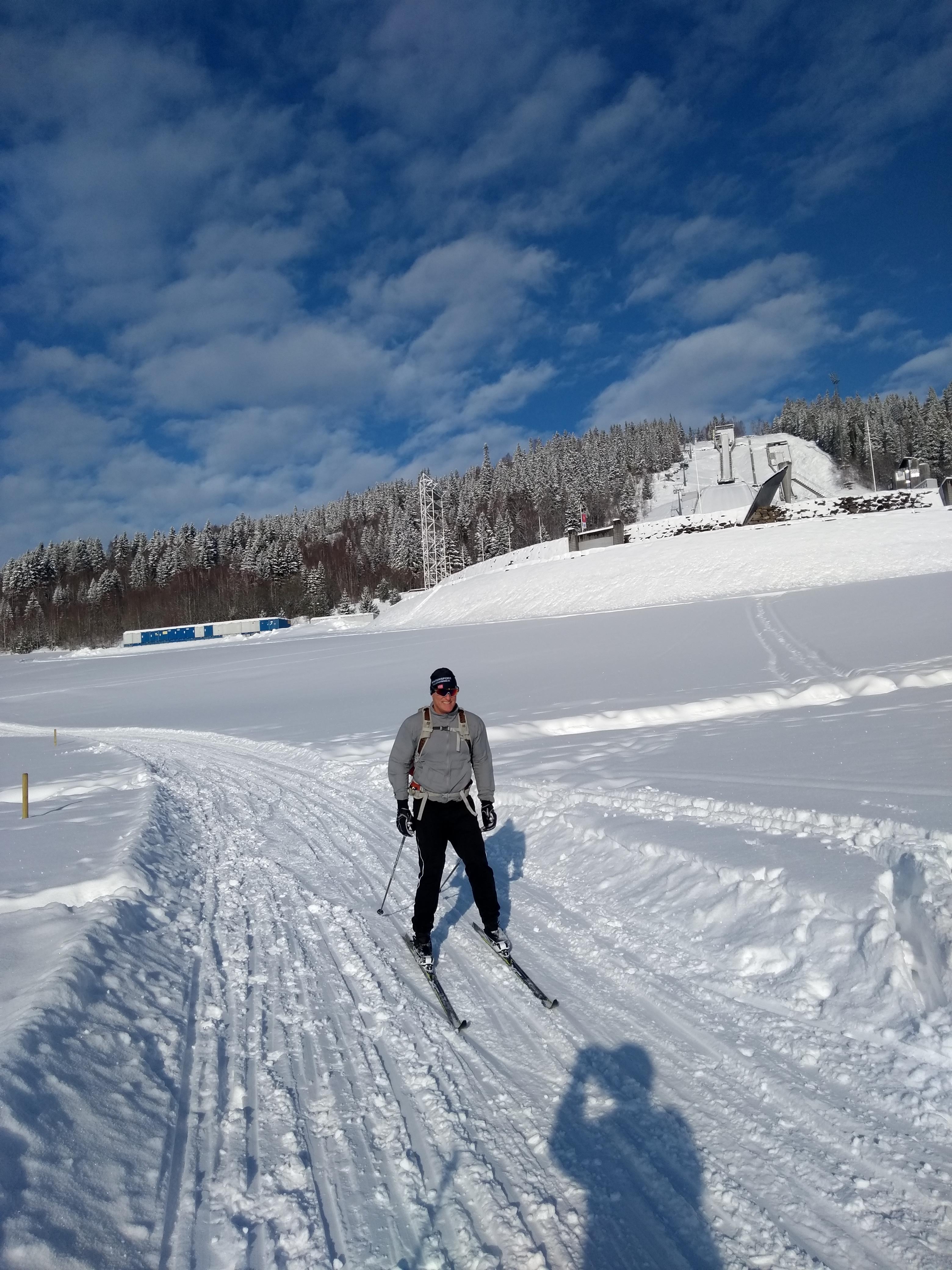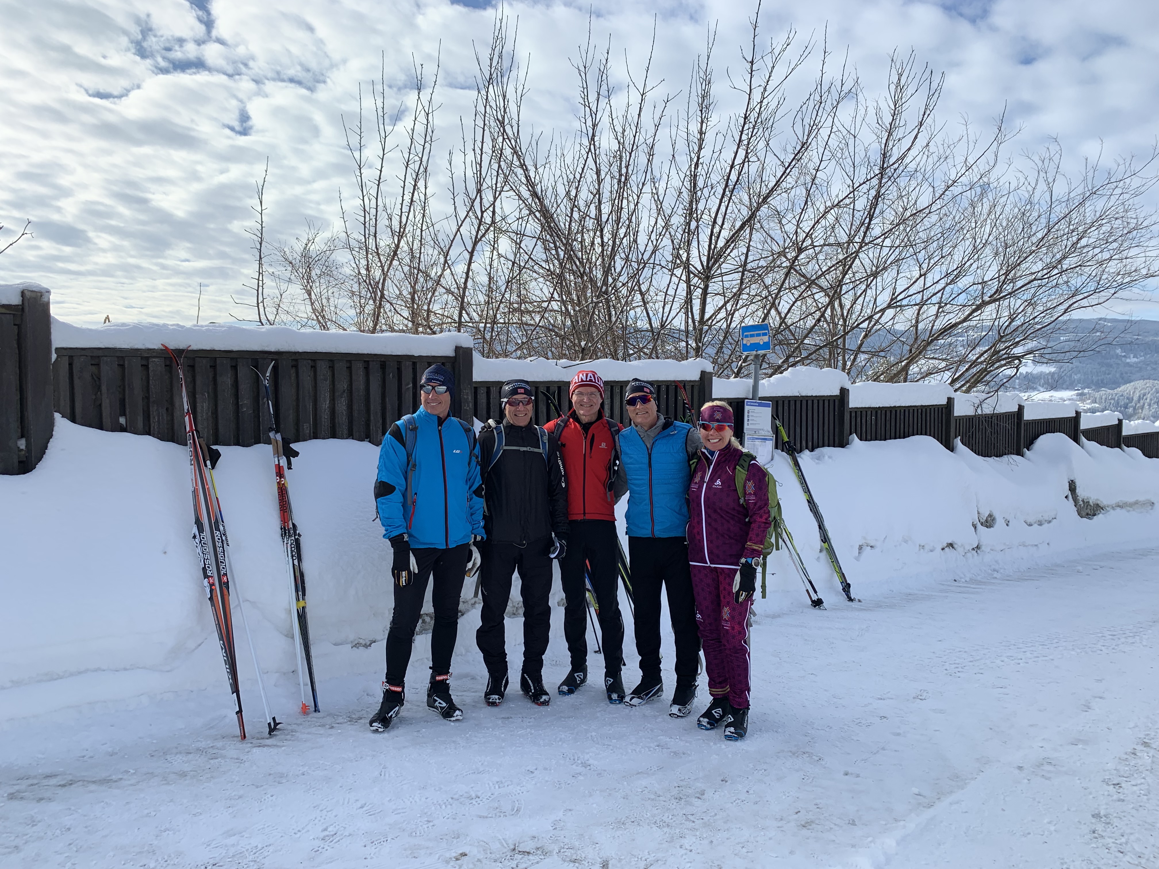 We walked down early morning to the bus station to meet Ray and Heather at bus 262. We rode up to Sjusjoen Skisenter which is at the top of the last hill of the Birkiebeiner. It’s basically 15 kms down with one steep long part that if it’s fast the pros hit 70km. The ski network is huge (2000 km around Lillehammer alone)) and there’s a very cool app. called Skisporet.no that shows real time grooming, web cams, wax selection, weather conditions etc.. for all of Norway. Around Oslo there are 2600 km of groomed trails. Skiing is a way of life here!