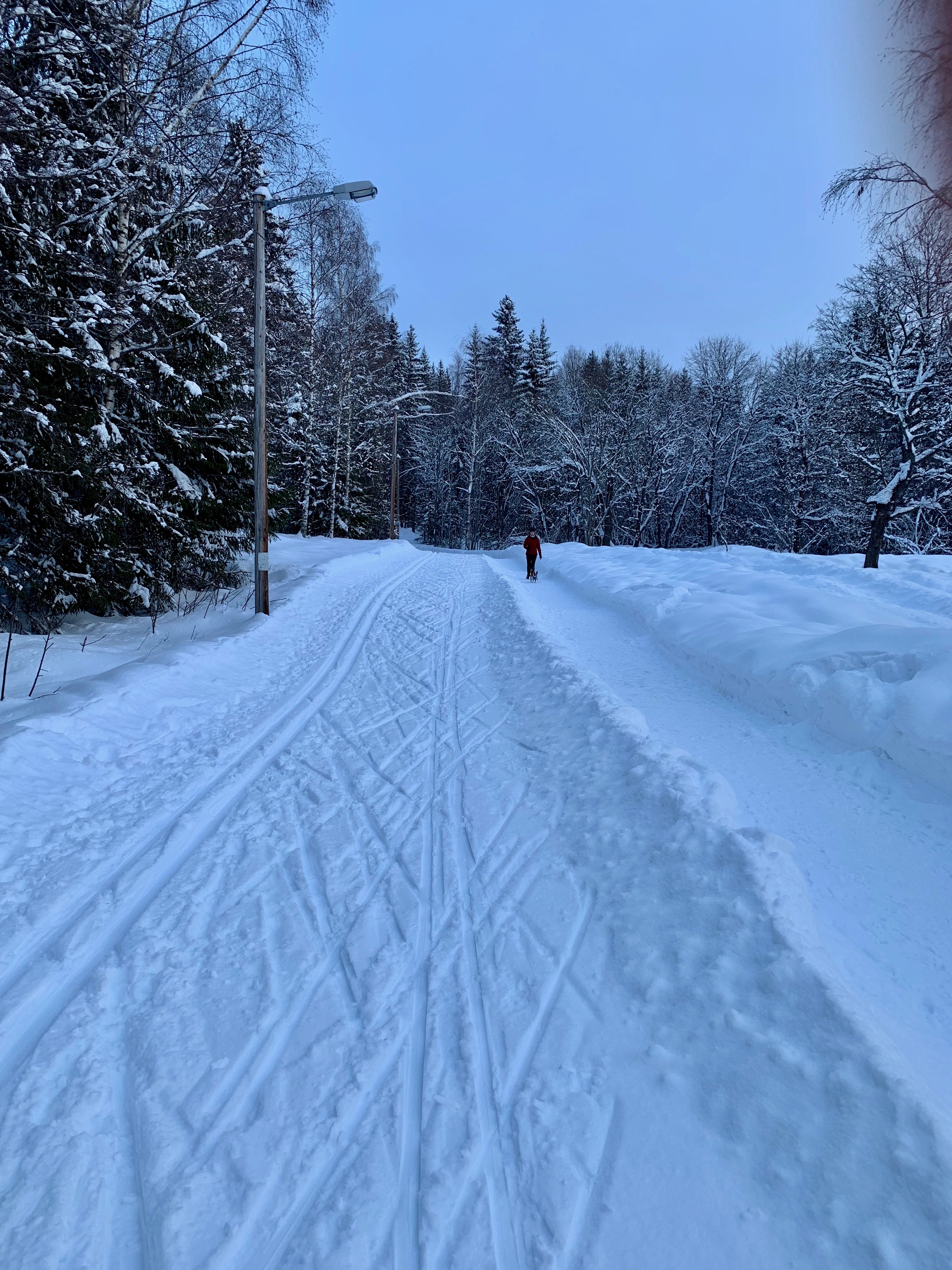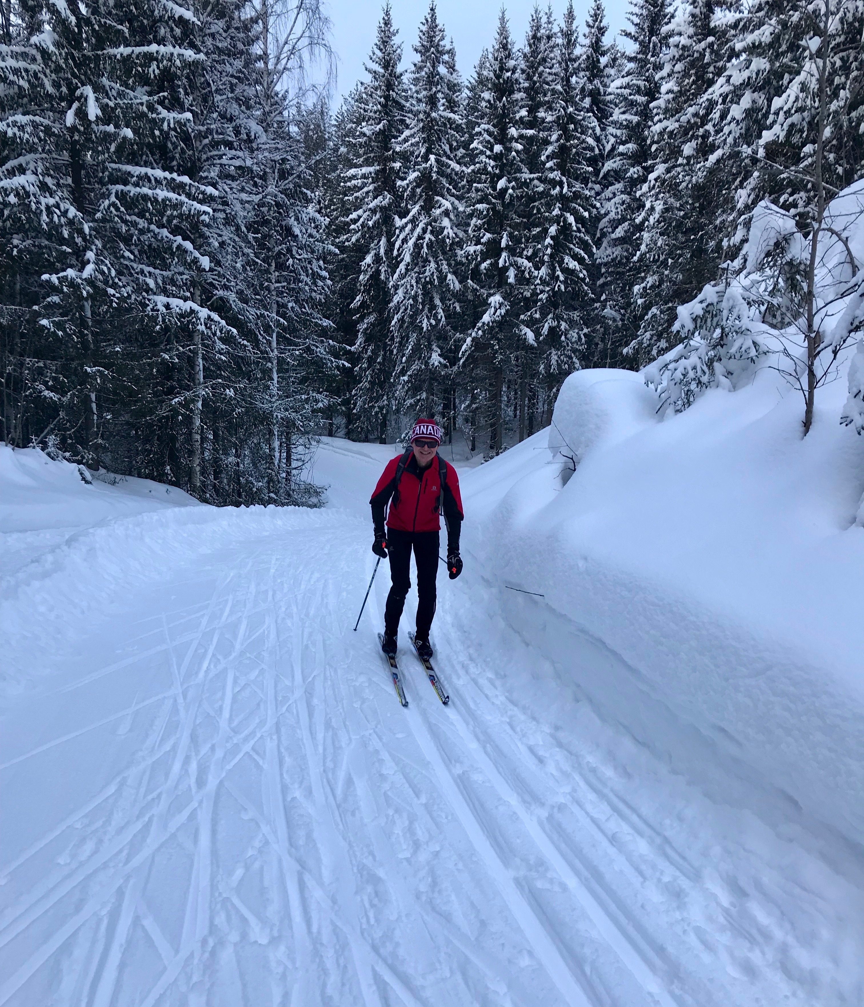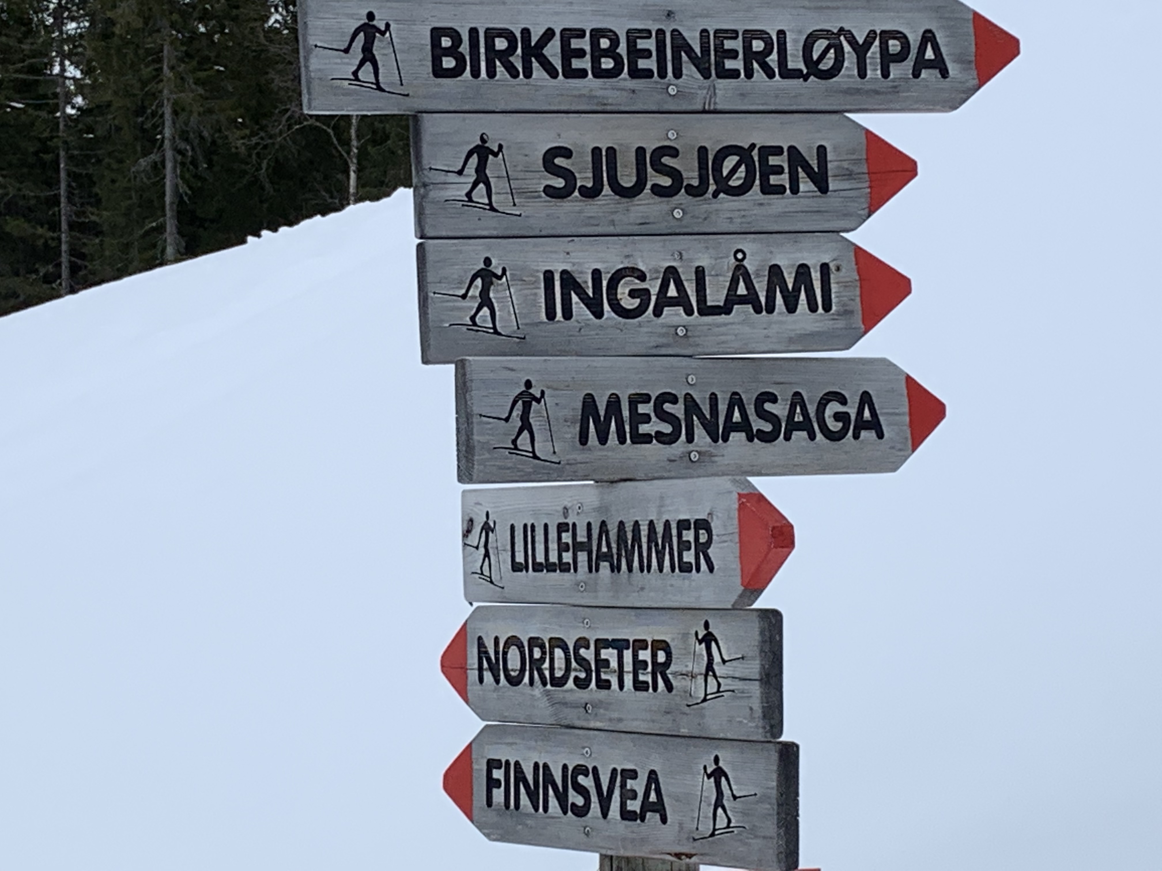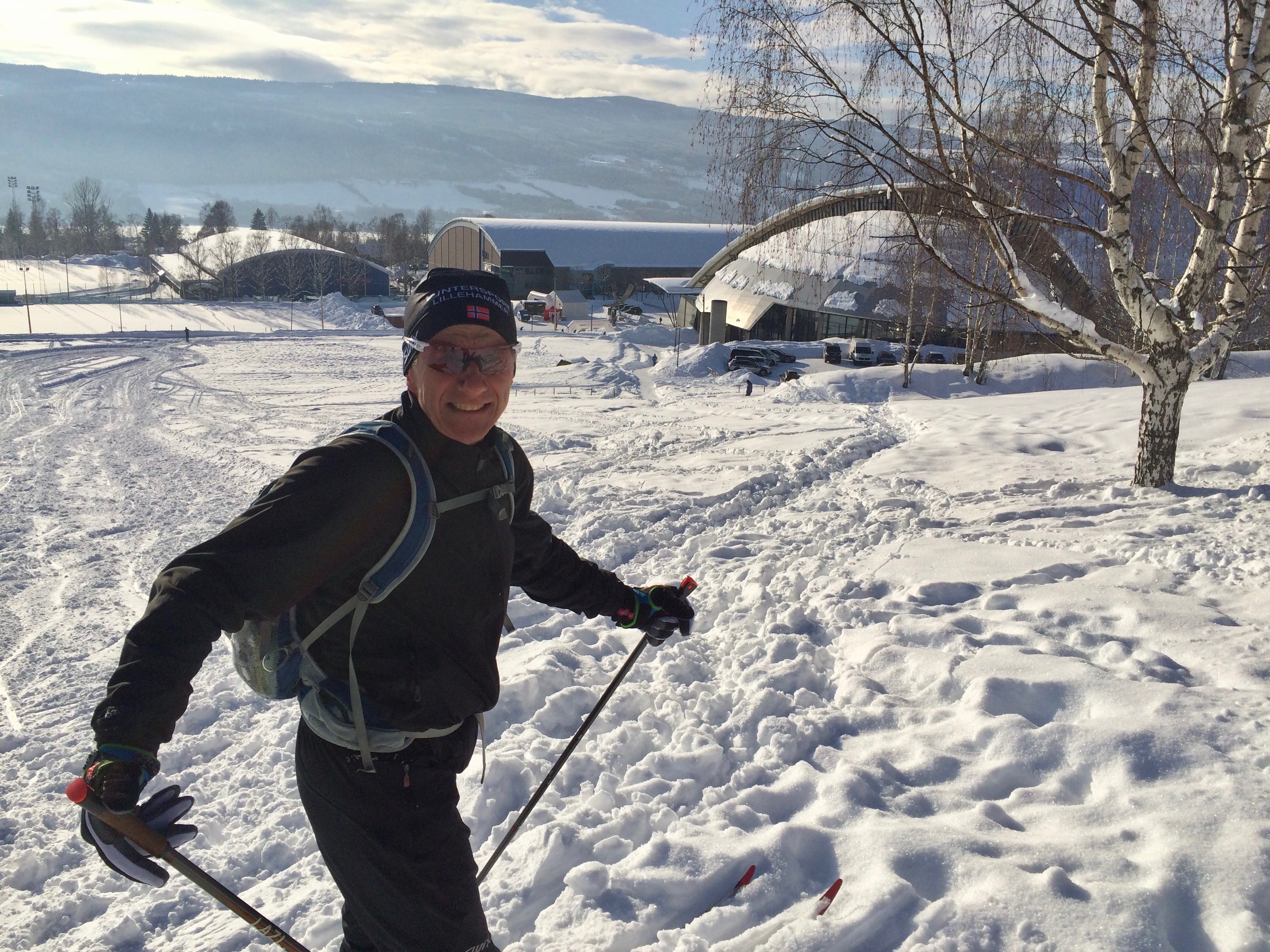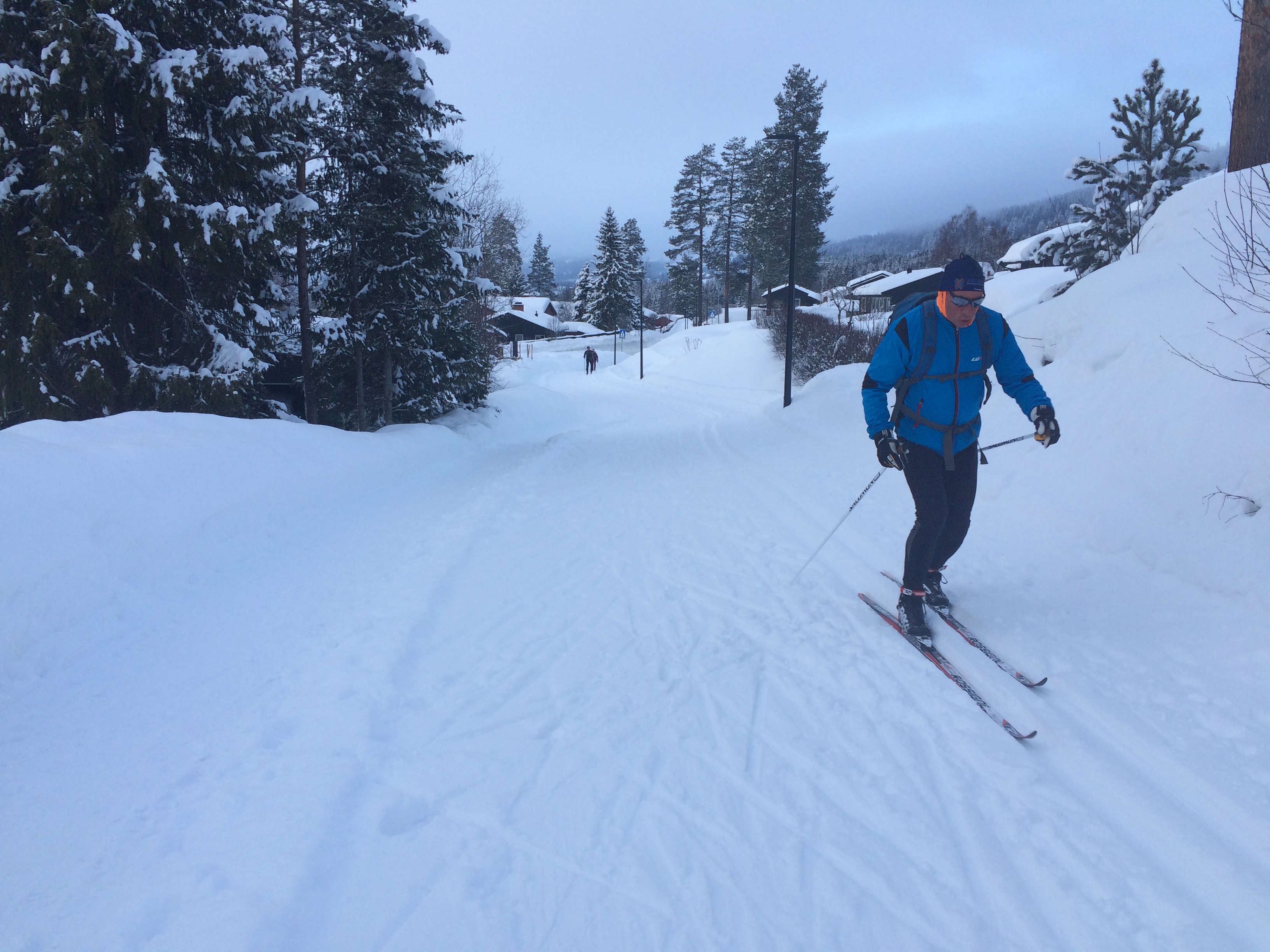 We walked down early morning to the bus station to meet Ray and Heather at bus 262. We rode up to Sjusjoen Skisenter which is at the top of the last hill of the Birkiebeiner. It’s basically 15 kms down with one steep long part that if it’s fast the pros hit 70km. The ski network is huge (2000 km around Lillehammer alone)) and there’s a very cool app. called Skisporet.no that shows real time grooming, web cams, wax selection, weather conditions etc.. for all of Norway. Around Oslo there are 2600 km of groomed trails. Skiing is a way of life here!