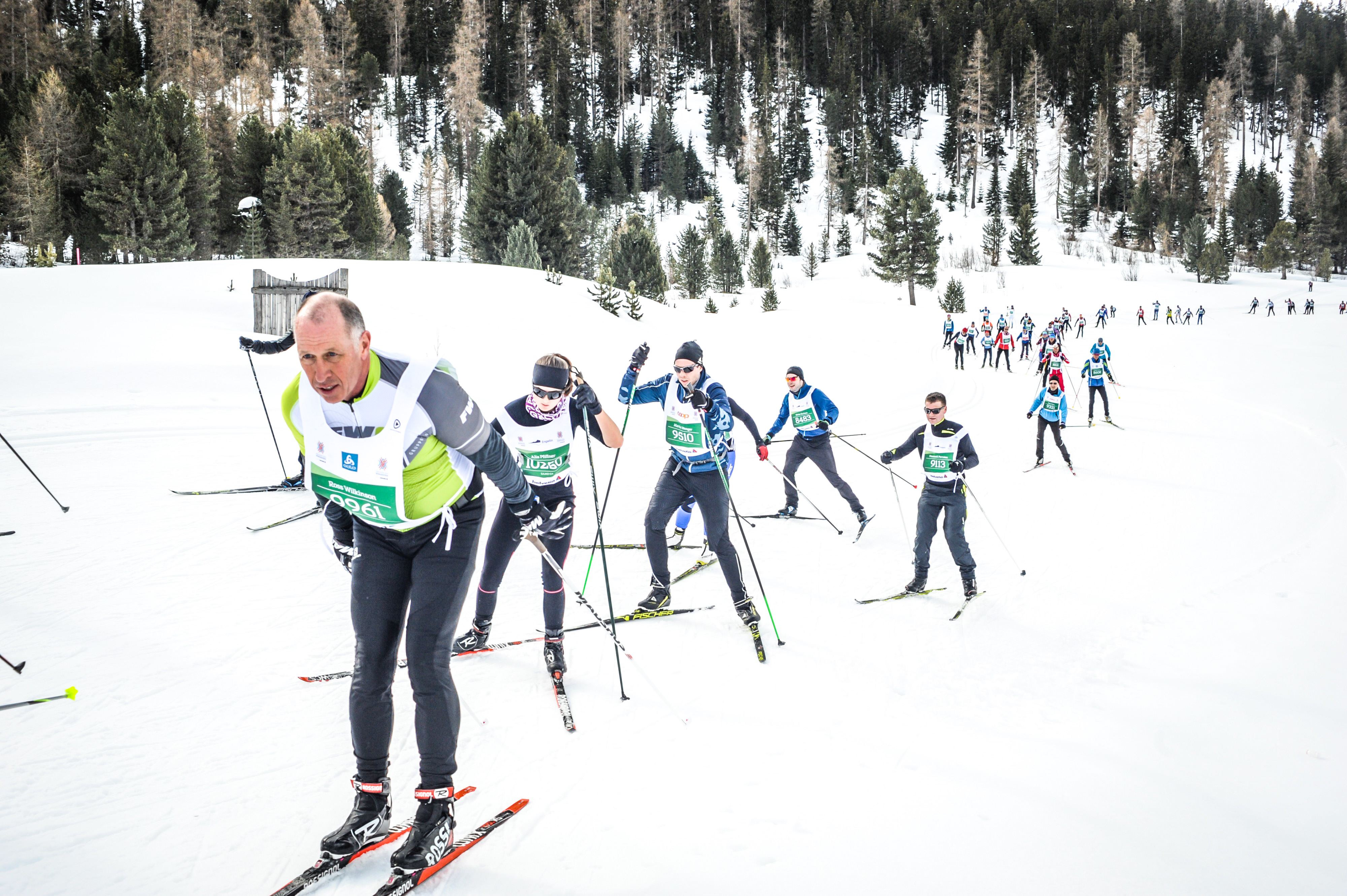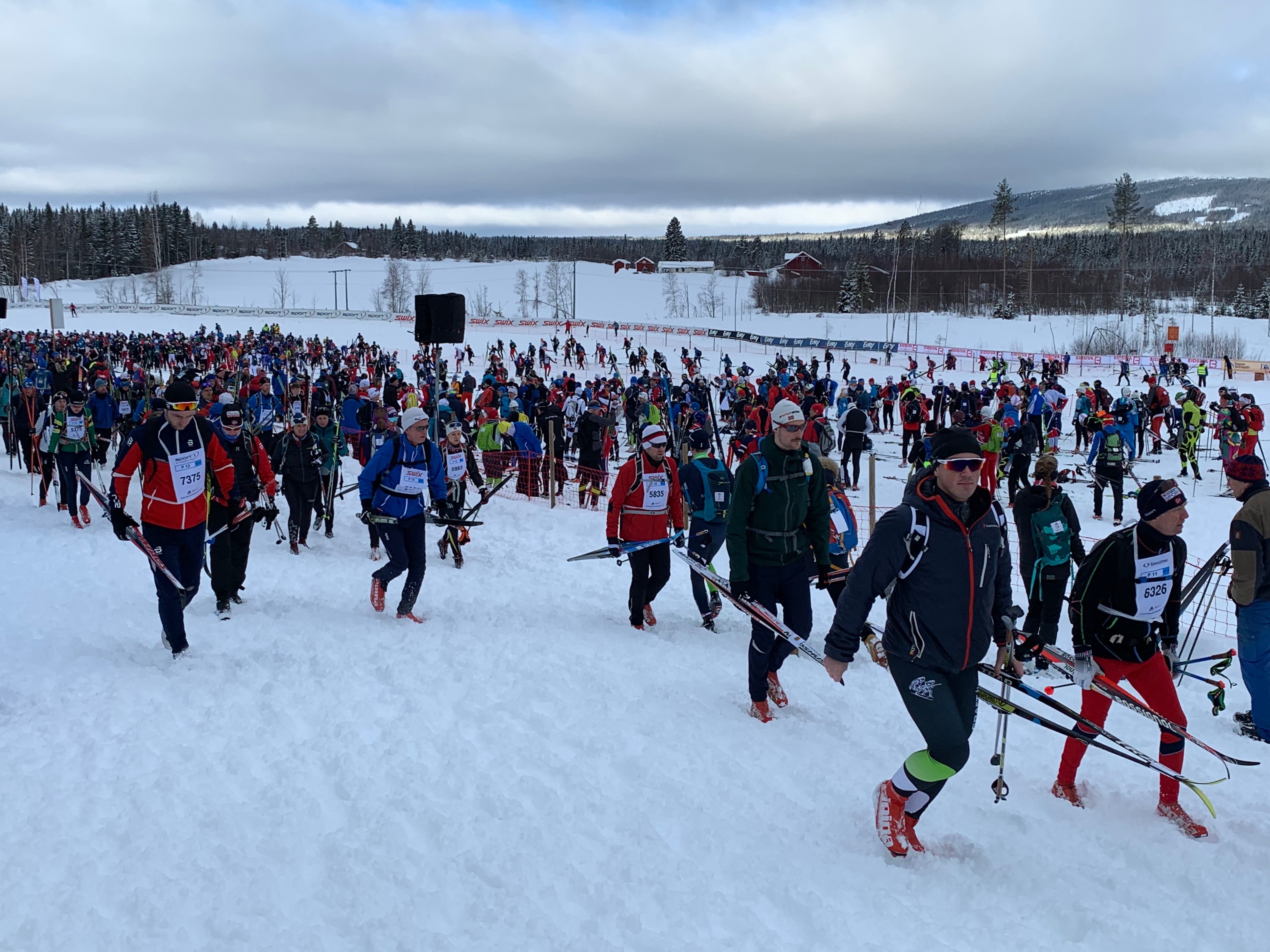 The start area wasn’t too large so they put everyone into waiting area pens (holding their skis and poles) and then opened the gate at the appropriate time. I’ve never seen so many people packed in so tight. It was a very relaxed start as once it was time for your wave you ran out to the start, put your skis on and just started once you were ready. There wasn’t the usual craziness at the start (e.g. broken poles and people falling).