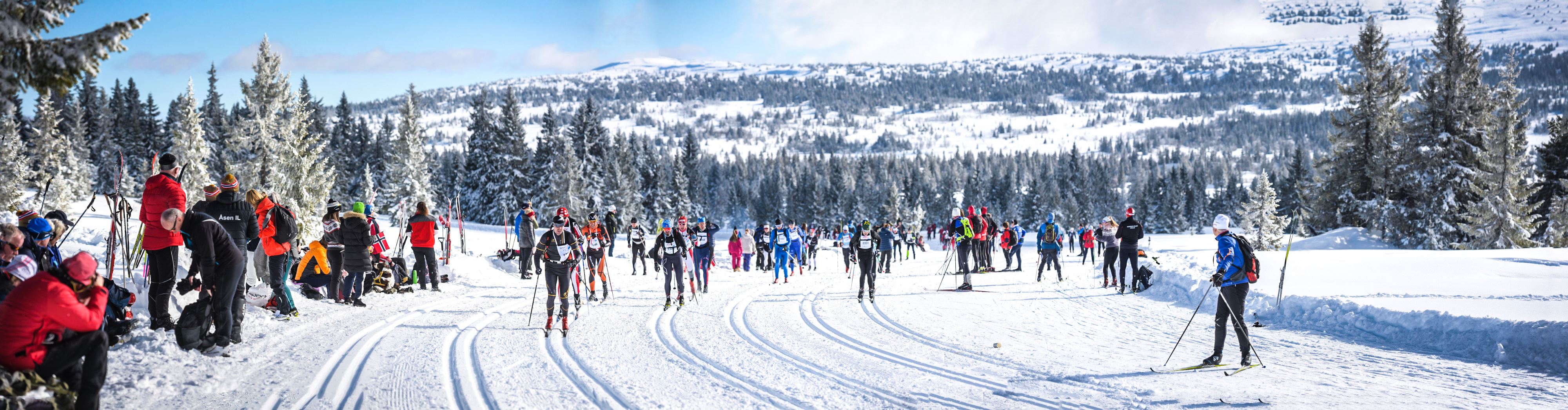 The legenday Birkiebeiner (Birkiebeinerrennet) is Norway’s most traditional cross country ski race over two mountains (54 km). Therace starts at Rena and finishes at the Birkebeiner Ski Stadium in the Olympic town of Lillehammer. It’s been held annually since 1932. The 54 km, classic technic, race crosses two mountains, and the track takes you through breathtaking sceneries. About two thirds of the race is over barren mountains and in regards to total climbs Birkiebeinerennet is the most demanding of the Worldloppet races. All participants must carry a backpack weighing at least 3.5 kg throughout the race with ( windbreaker, pants, spare gloves, hat, food, drink and wax etc.) With its track, wild snow, profile, demanding mountains and the Norweigans relationship to winter the race has become very popular. This year there will be about 12,000 participants.