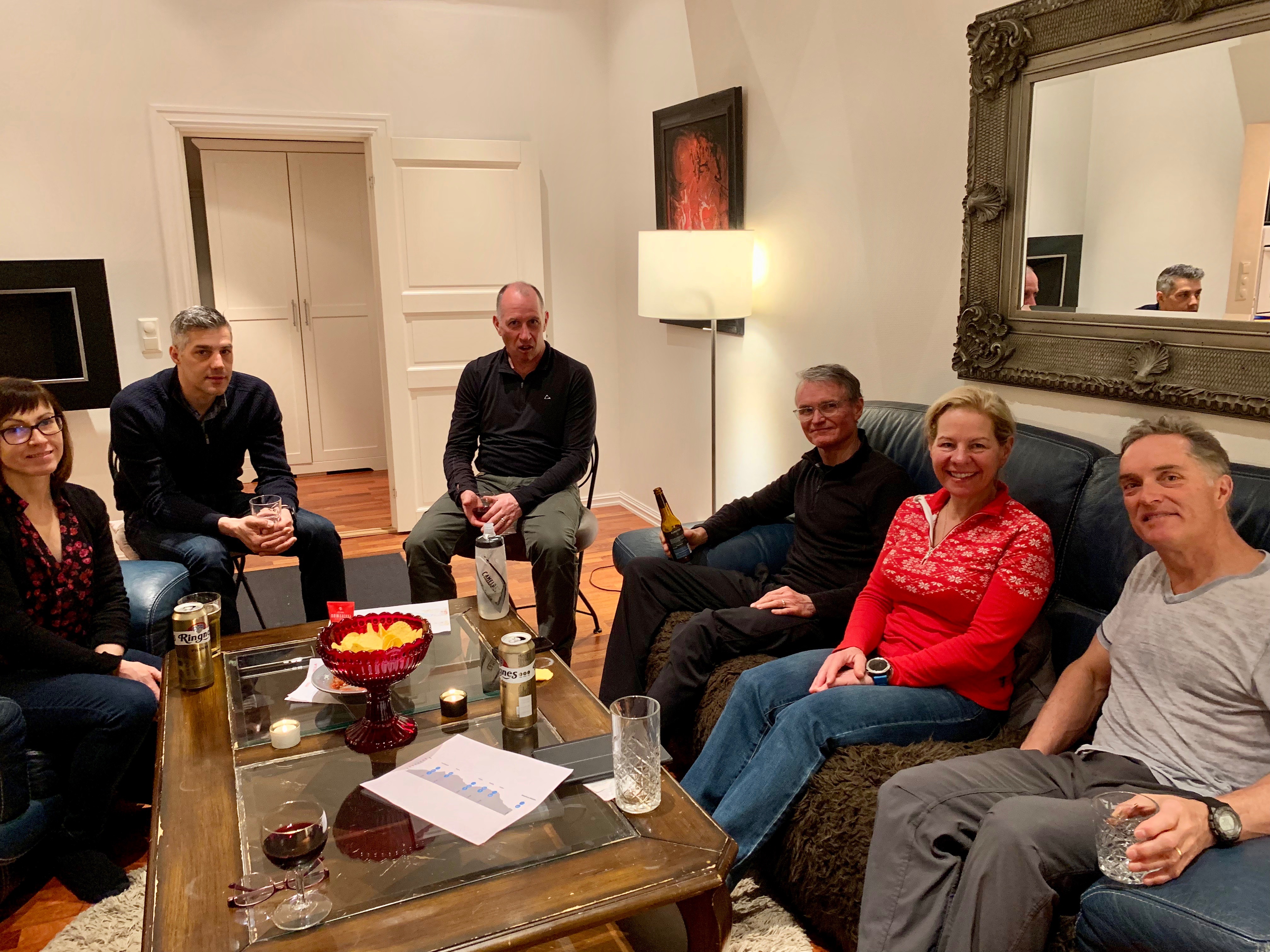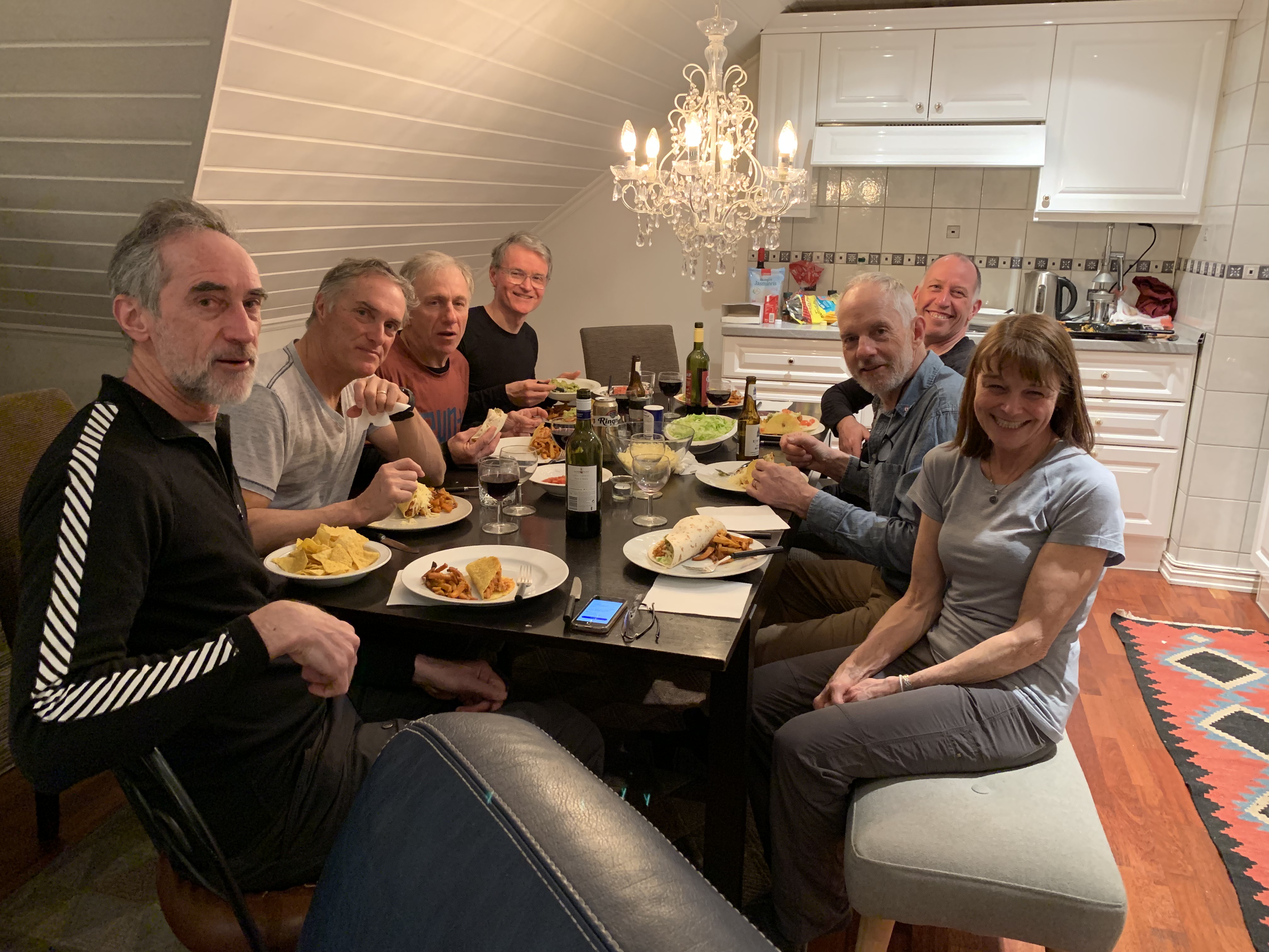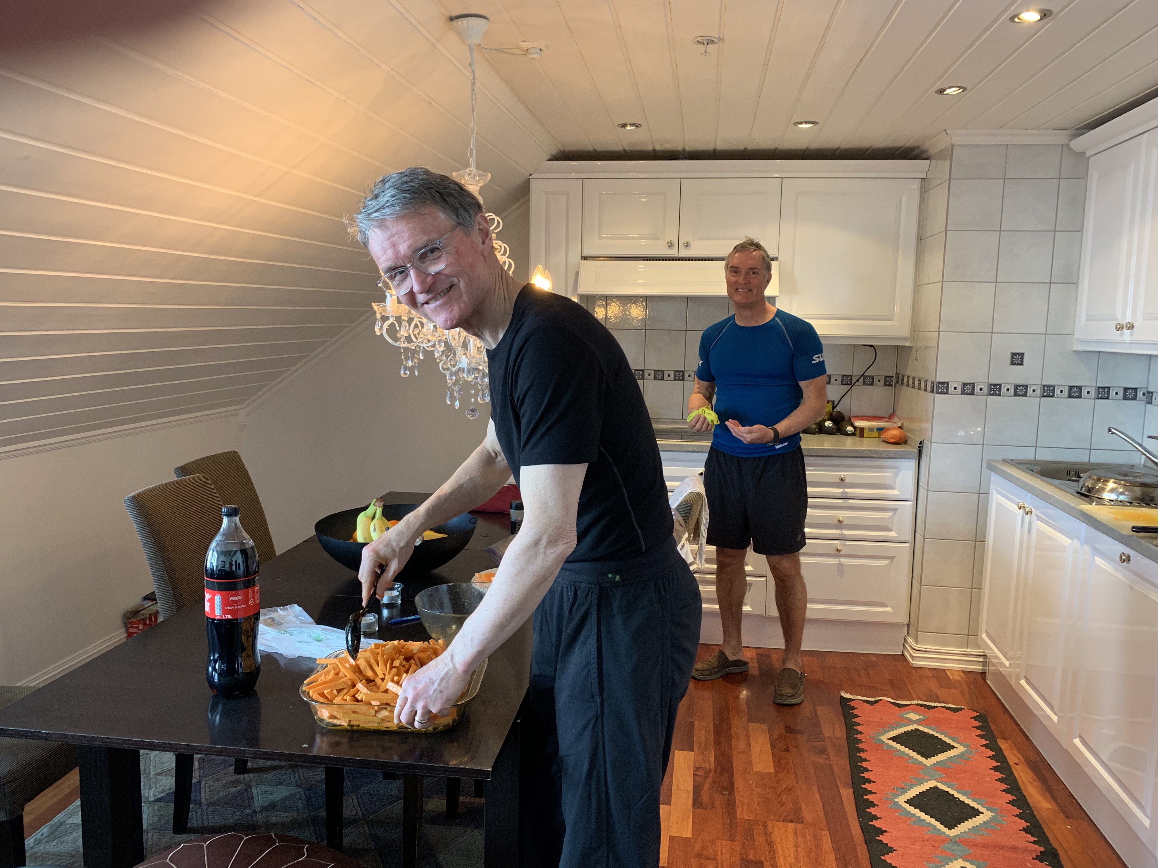 We went into the village to get a new iron, some wax and also found some amazing studded running shoes called Ice Bugs that are made in Sweden. We ended up wearing them home. It’s so icy when walking here as they don’t use salt or gravel for environmental reasons. The boys went into town to the local grocery store to shop up for our dinner party.