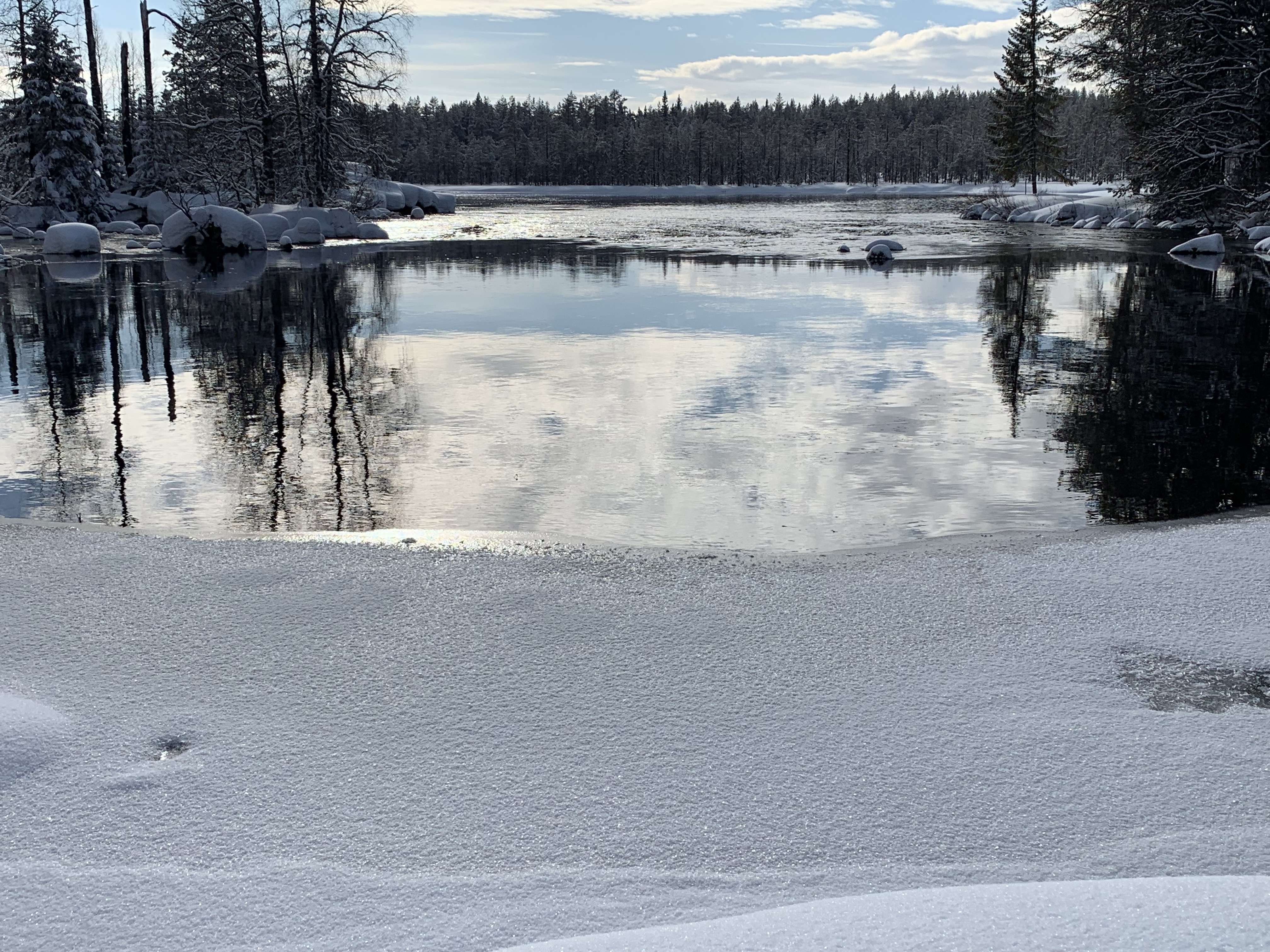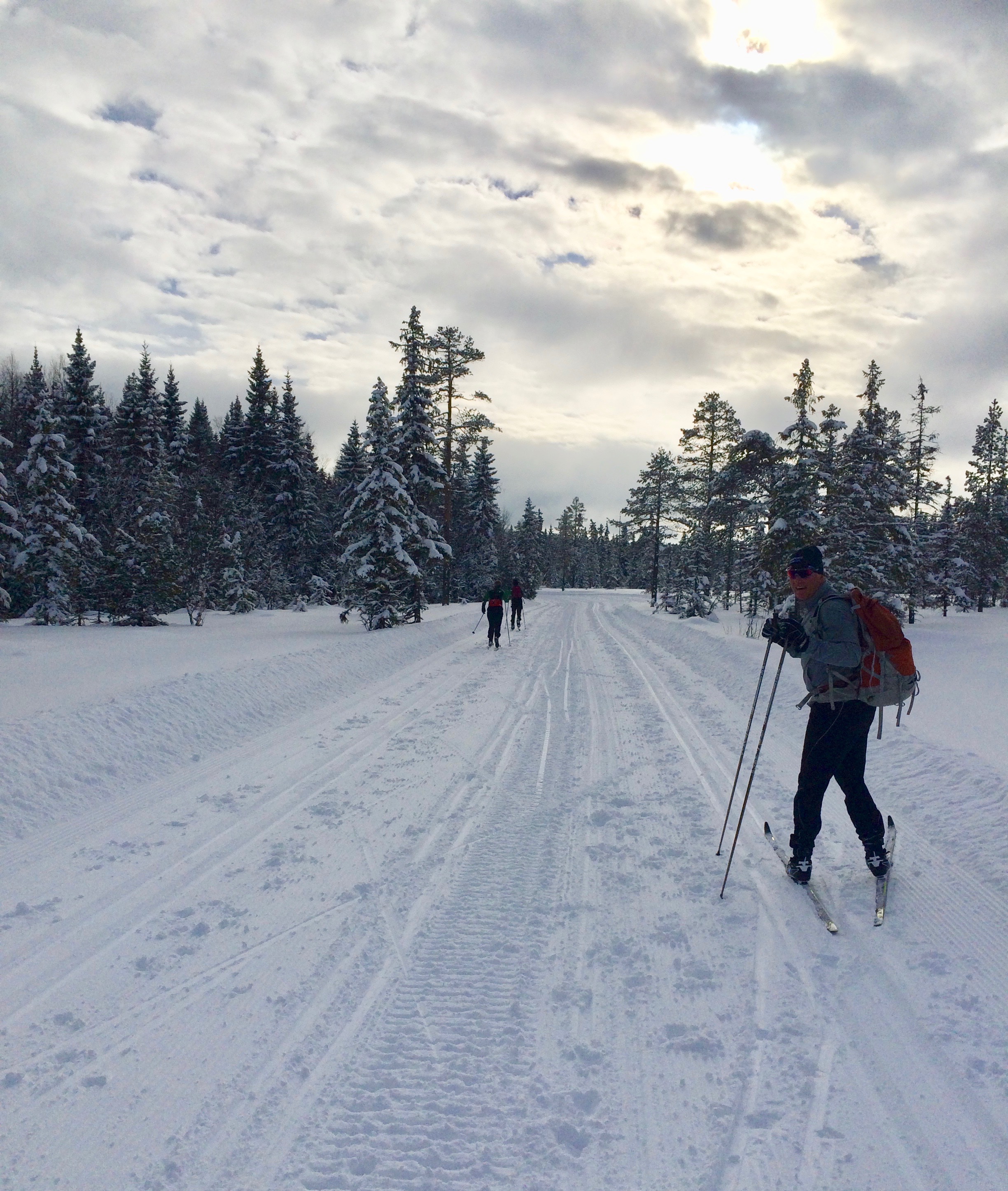 We woke up bright and early, 4:30 am to a cloudy day but they predicted the sun was coming out. The temperature was about -5 degrees and their was a light breeze. Everyone was a little nervous and anxious but very excited! We were lucky that we could just ski out the door 2.5 km with our headlamps to the bus pick up. We boarded the nice coach bus to Rena at 5:35am and the trip was about 2 and half hours.