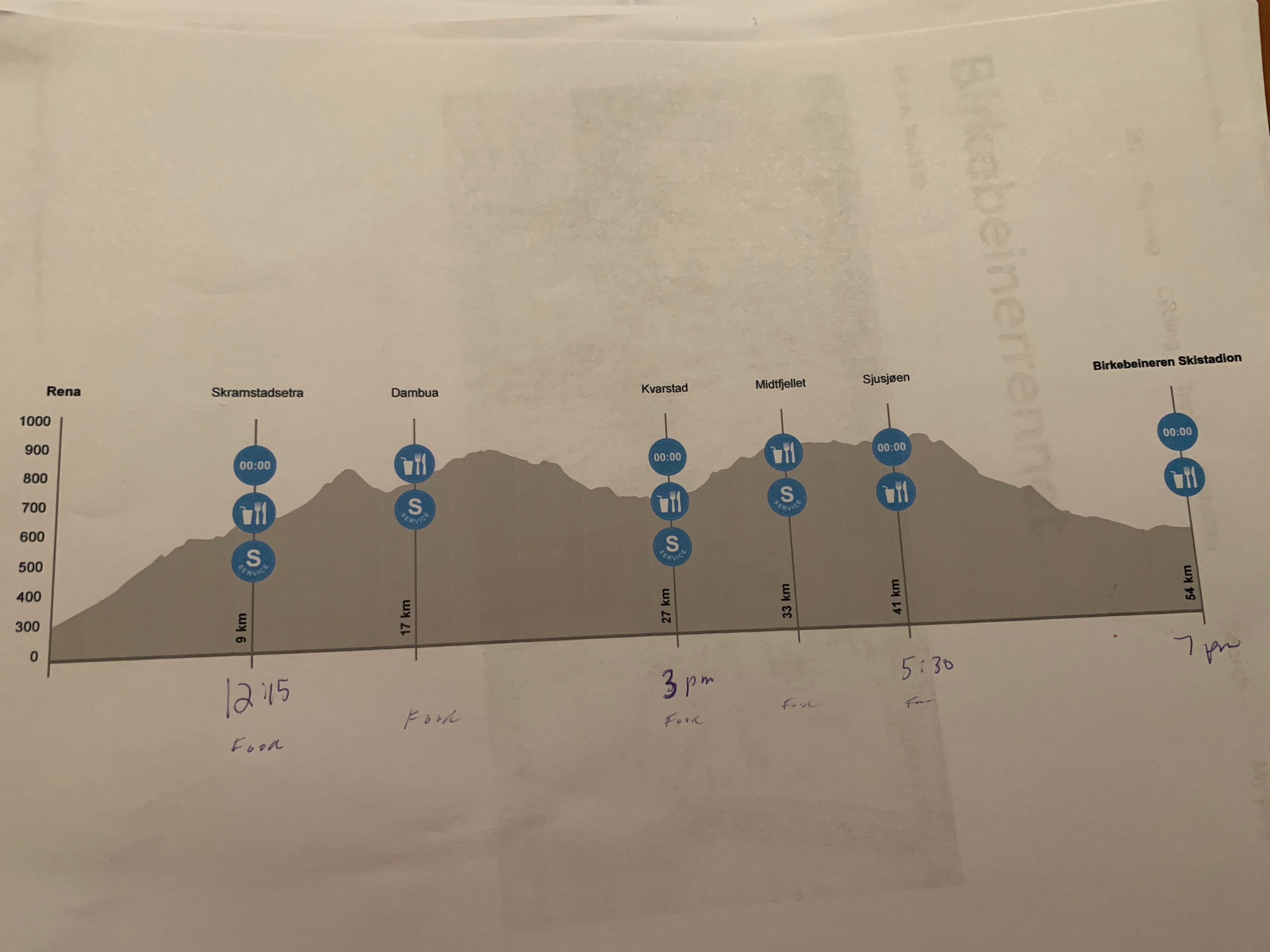 The course profile.We started west of Lillehammer in a town called Rena. As you can see it’s fairly hilly!