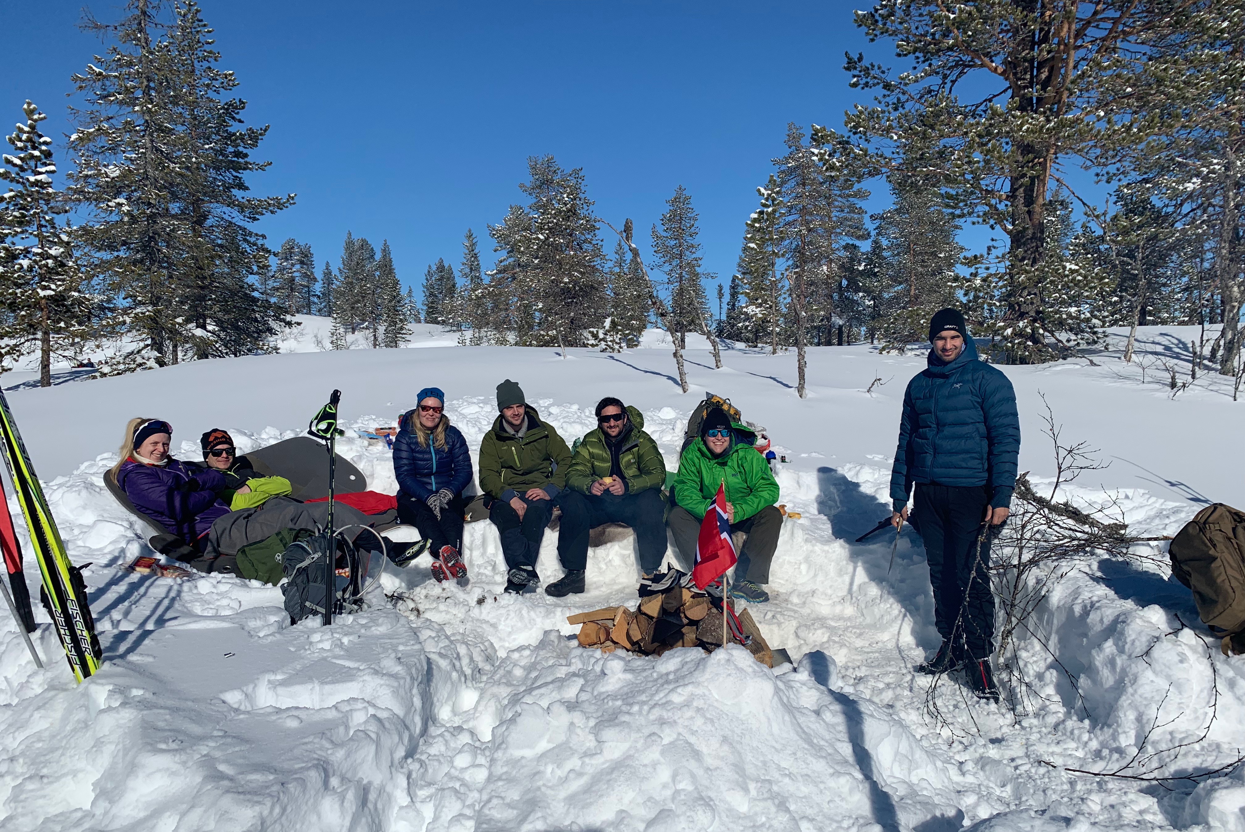 Groups like this and families were gathered around fires, sitting on reindeer hides, cheering and celebrating the Birkie! This group offered me some rum!