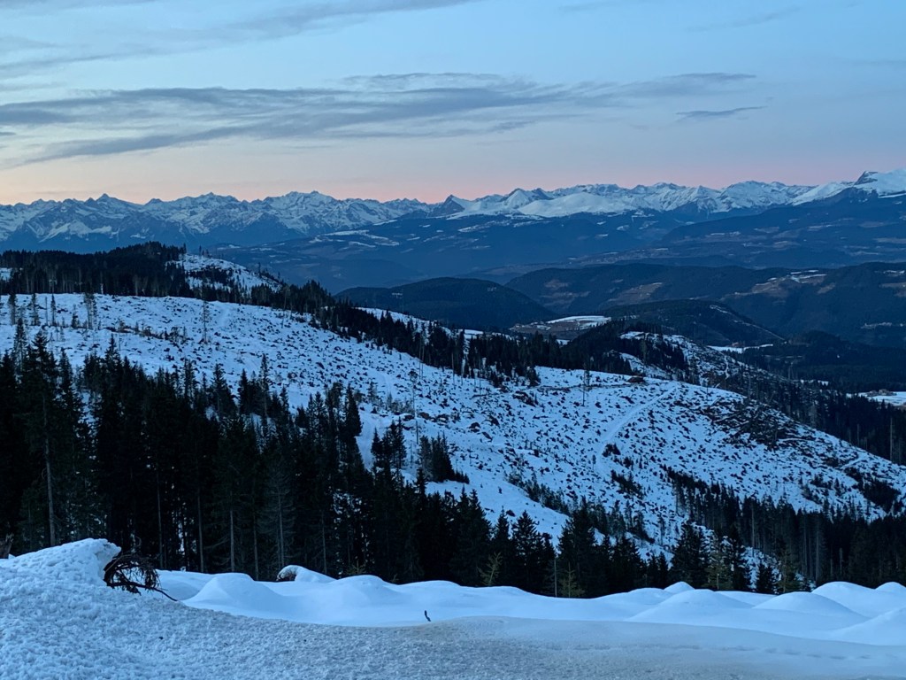 Upon arriving in Munich we had to wait for our ski bag for over an hour and for our rental car for an hour and half. At the same time we found out that the Konig Ludwig Lauf had been cancelled. We were both so disappointed and immediately thought that we should see what other race we could do. Once we were on the road we headed to Carano, Italy which is very close to Cavalese. The last 40 km of the drive was on the beautiful, narrow, twisty roads of the Dolomites, over the Lavaze pass.